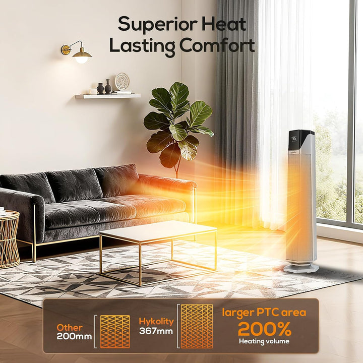 • Powerful and Widespread Heating - - Experience instant and efficient warmth with Hykolity 30" ceramic heater featuring a 326mm large PTC element(Bigger and wider), upgraded thermal design, and 70° oscillation, perfect for large rooms up to 300 ft².