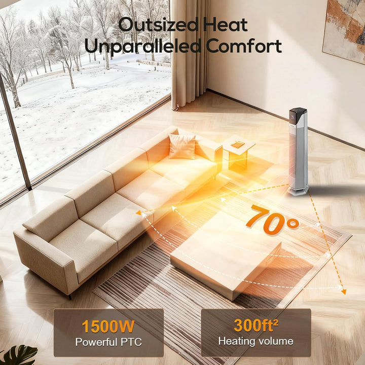 • Hykolity Space Heater Large Room, 30" Electric Heaters for Indoor Use, Portable Room Heater with Thermostat and Remote, 70° Oscillation, 24H Timer, 1500W Tower Heater for Office, Bedroom, Silver