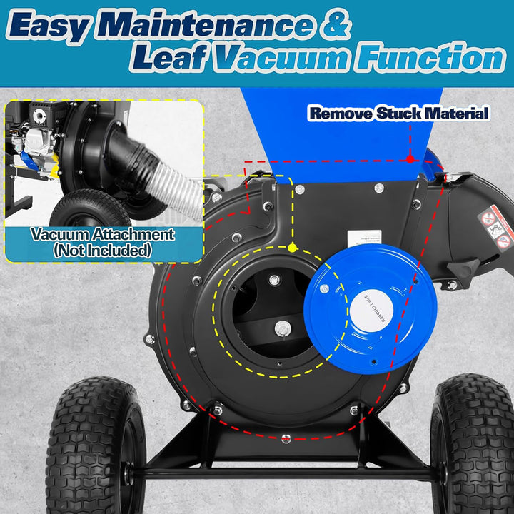 • Hykolity Wood Chipper 7.5 HP Gas Powered Shredder with Tow Hitch Collection Bag Wheels 3" Max Diameter Towable Multifunctional Heavy Duty Garden Mulcher