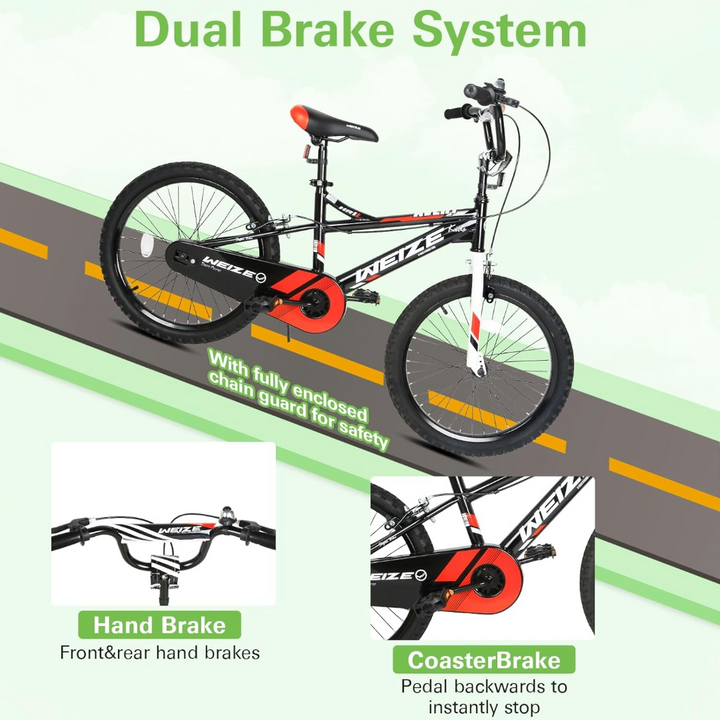 Enhanced Safety Measures: In addition to a hand brake, our kids' bicycle is equipped with a coaster brake, specially designed for small kids who may lack the strength to control brakes manually. The enclosed chain guard serves as an extra layer of protection, preventing injuries and ensuring a safe pedaling environment.