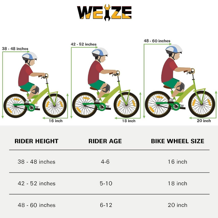 Size Recommendation for Optimal Fit: Select the 20" bike tailored for 6–12-year-olds, accommodating a height range of 48"–62". To ensure an ideal fit, we recommend measuring the child's INSEAM and comparing it with the SADDLE HEIGHT for a comfortable and secure riding experience.