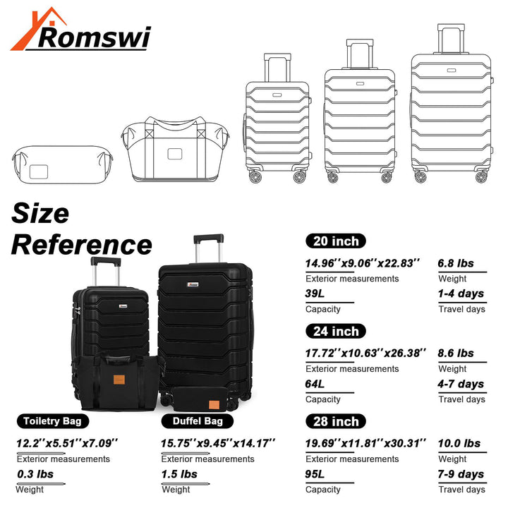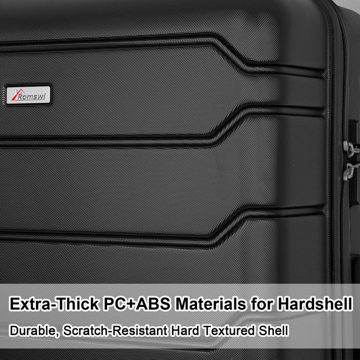 • Romswi 4 Piece Luggage Set, 20 28 inch Travel Suitcase Lightweight PC+ABS Hardside Durable with TSA Lock, Cup Holder, Duffel Bag – Spinner Wheels Black