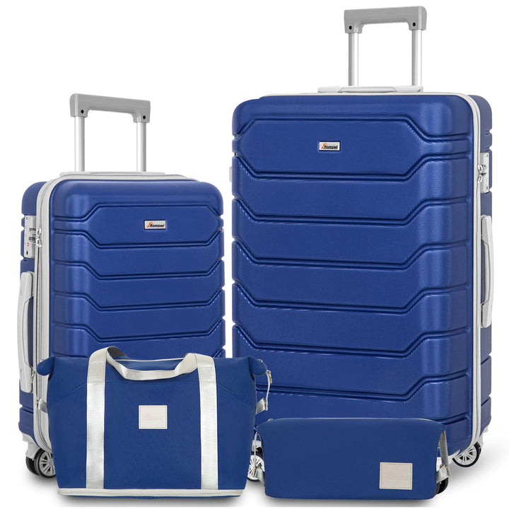 Romswi 4 Piece Luggage Set, 20 28 inch Travel Suitcase Lightweight PC+ABS Hardside Durable with TSA Lock, Cup Holder, Duffel Bag – Spinner Wheels Navy