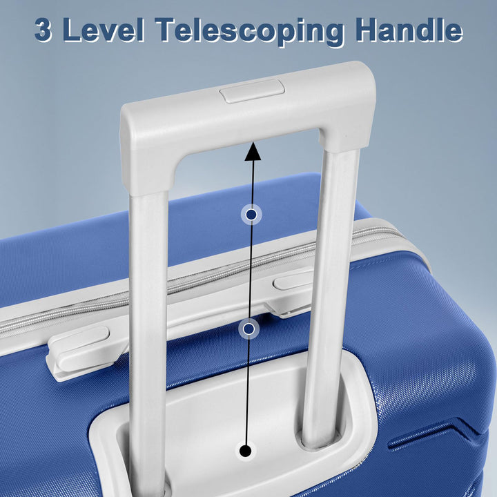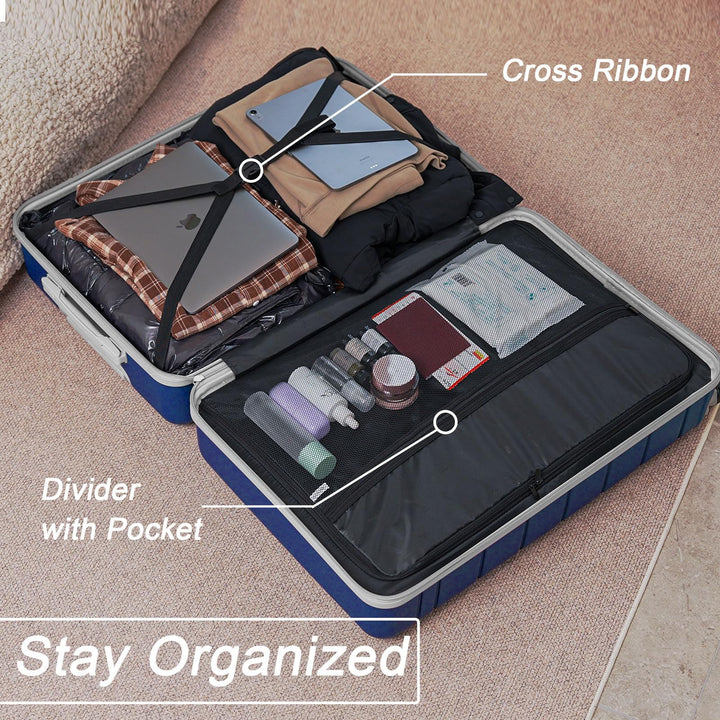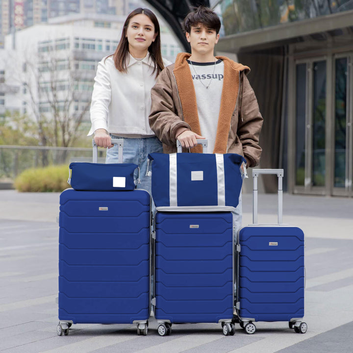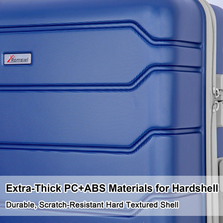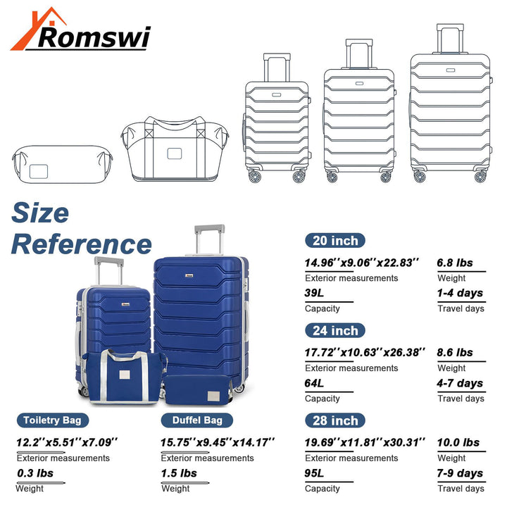 • Romswi 4 Piece Luggage Set, 20 28 inch Travel Suitcase Lightweight PC+ABS Hardside Durable with TSA Lock, Cup Holder, Duffel Bag – Spinner Wheels Navy