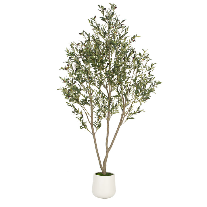 Romswi Faux Olive Tree with Oval White Planter, 7 FT Tall Faux Olive Trees, with Natural Wood Trunk Lifelike Fruits, Fake Greenry Plant for Home Decor