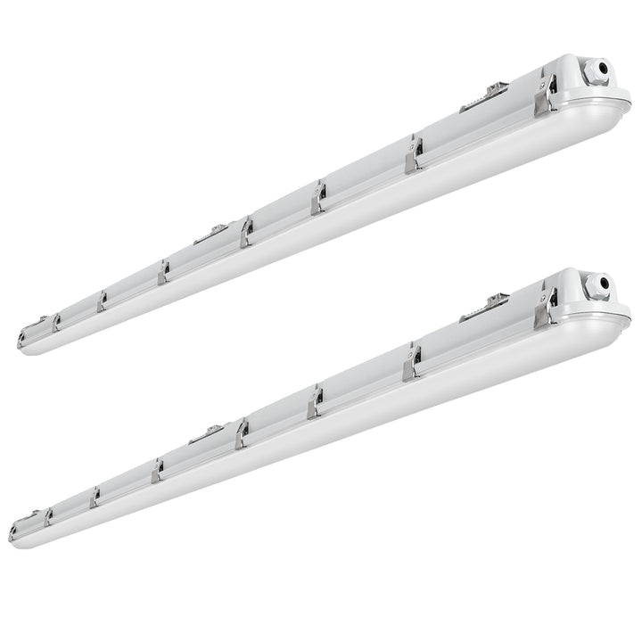 🌦️ Perfect for Wet Locations: Engineered for harsh indoor and outdoor environments, our Vapor Tight Fixture is fully protected with an IP65 rating. It features a full-length, casketed polycarbonate lens and a single-piece non-corrosive polycarbonate body. This makes it an excellent choice for utility lighting, parking garages, freezers, food processing areas, and more.