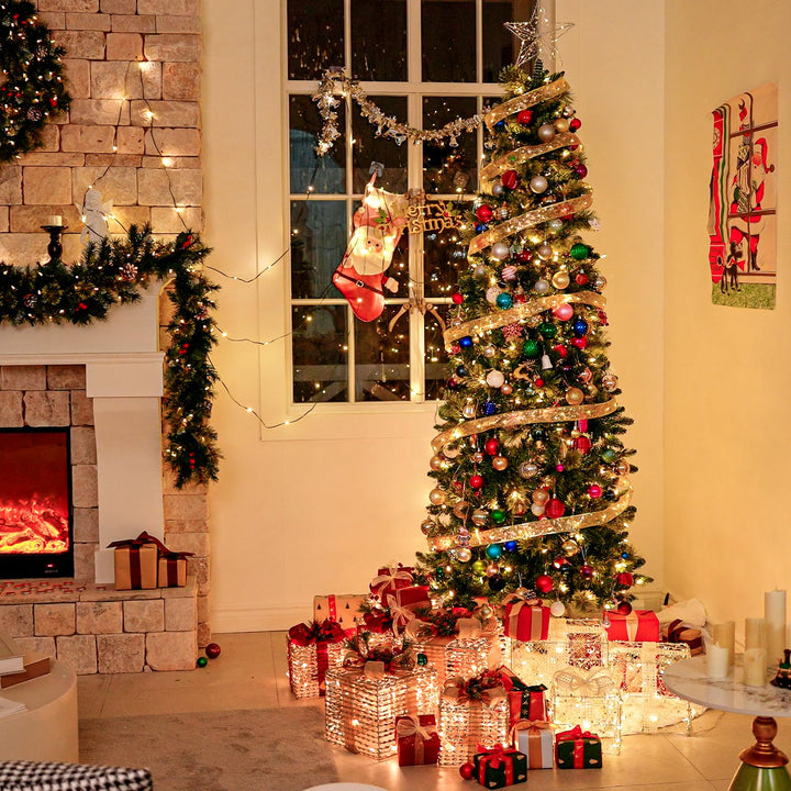Bring the festive spirit into your home with our Pre-lit Pencil Christmas tree. Carefully designed with quality materials, this slim tree is perfect for decorating any space with elegance.<br>