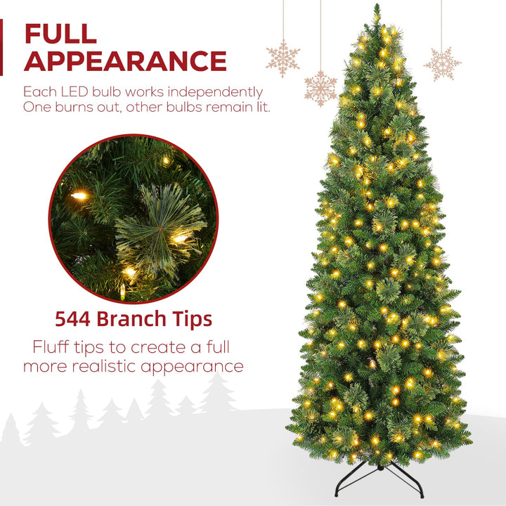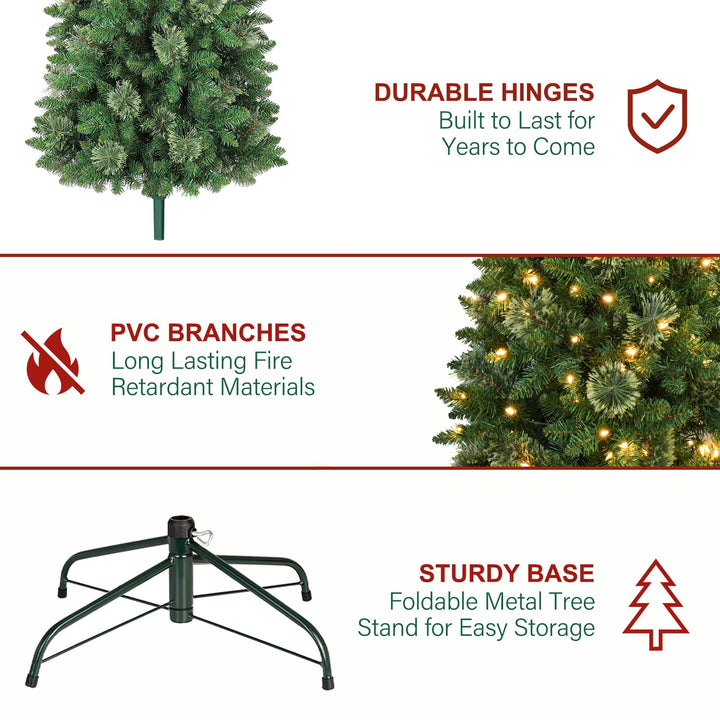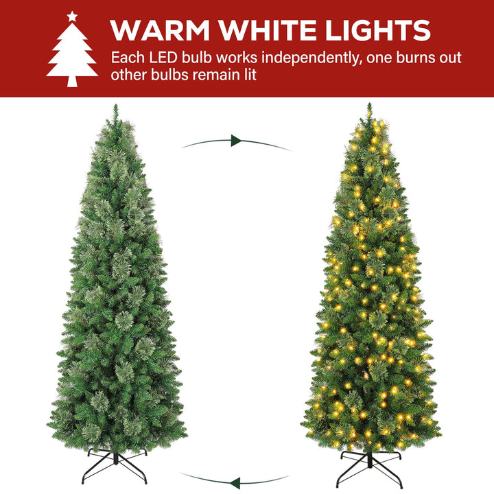 Vivatrees 6 Ft Prelit Pencil Christmas Tree with Warm White Lights, Metal Stand, Hinged Branches, Realistic Xmas Tree for Holiday Decor, Green